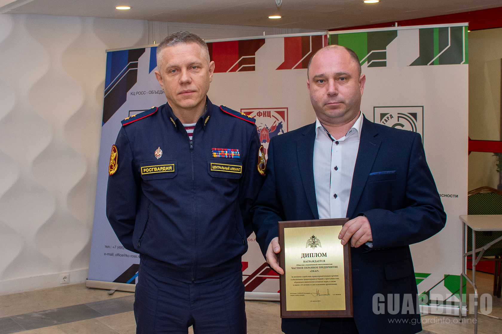 Также, традиционно руководители частных охранных организаций – членов президиума ФКЦ РОС, которым в нынешнем году исполнилось 20 и 25 лет, были награждены памятными дипломами ГУЛРРиГК Росгвардии.